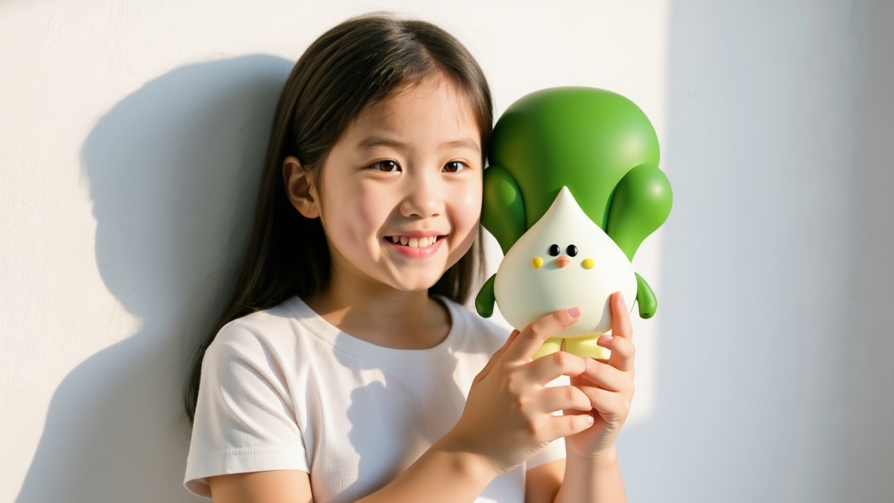 Little girl holding a cabbage doll.