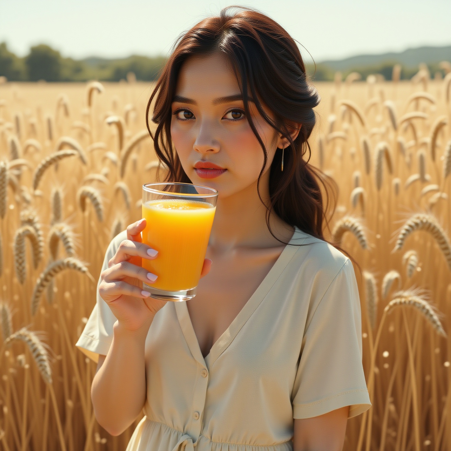 Let the woman drink the juice.