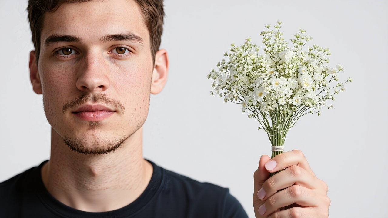 The man is holding a flower.